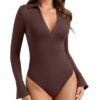 Avidlove Bodysuits for Women High Neck Long Sleeve Body Suits Snap Closure Double Lined Mock Neck Bodysuit Soft