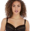 Become totally irresistible with this plunge bra from Freya. Apart of the Temptress range, it features a fully semi-sheer bra with lace detailing that has luxurious gold charms for an all-over sexy look. The cups are crafted from a semi-sheer fabric that shows off your bust with sheer lace on the upper cups, made complete with a strap above the cups that frame your bust with elegant gold adjustable clasps allowing you to create your perfect fit. It provides great coverage and has non-padded cups that keep your natural shape whilst the plunging neckline enhances your cleavage and has a gently lifting effect for the supportive underwire. The bra guarantees a comfortable fit with a hook and eye closure and adjustable straps. Made complete with a mini gold charm in the centre which is sure to catch attention. Pair with other items from the Tempress look for a super flirty look.