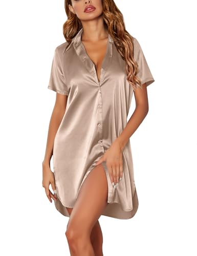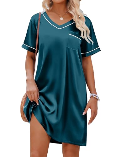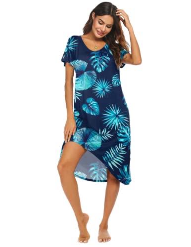 Ekouaer Nightgowns Womens Short Sleeve Sleepwear Comfy Loungewear Plus Size Night Shirt S-3XL