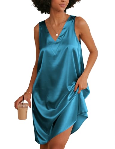 Ekouaer Nightgown Satin Lingerie Sleeveless Sleep Dress Babydoll Nightie Slip Chemise