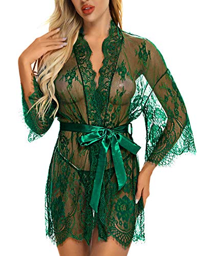 RSLOVE Women’s Lingerie Lace Babydoll – Sexy Nightwear V-Neck Strappy Nightgown with Thong