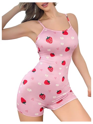 SHENHE Women’s Cute One Piece Onesie Pajamas Strawberry Floral Pjs Sleep Romper Loungewear
