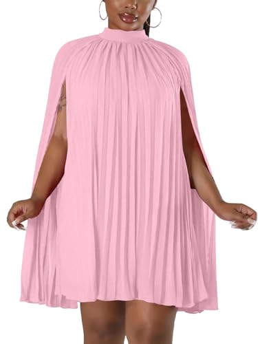 Women’s Casual Cape Sleeve Pleated Split Short Dress Loose Fit Cocktail Party Flowy Dress