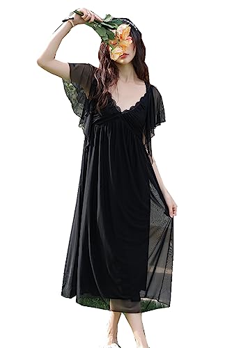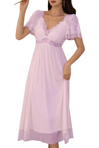 XXTAXN Women‘s Sexy Lace Sweetheart Neck Long Sleeve Corest Ruched Waist Flowy Mini Dress