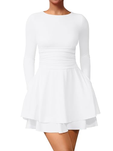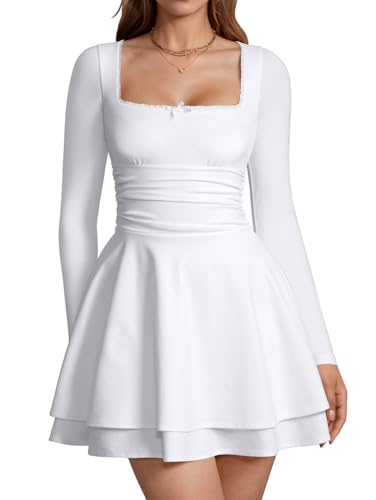 XXTAXN Women’s Sexy Corest Long Sleeve Square Neck Ruffle Pleated Wedding Guest A Line Mini Dress