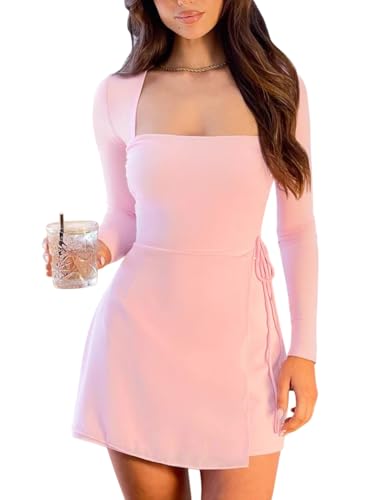 XXTAXN Women‘s Sexy Fall Long Sleeve Square Neck Party Club Bodycon Cool Mini Dress