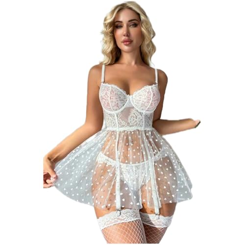 Women Sexy Lingerie Open Front Babydoll Dress Lace Chemise Sleepwear Mesh Nightgown with Thong