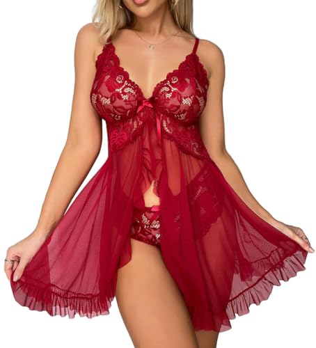 Sexy Lingerie for Women Open Front V Neck Lace Nightgown Babydoll Sleepwear Sheer Dress S-5XL