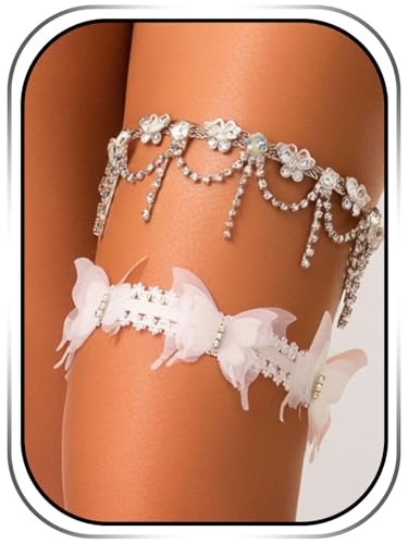 Campsis Wedding Garter for Bride, Rhinestone Thigh Garter Belt, Butterfly Leg Belt for Women