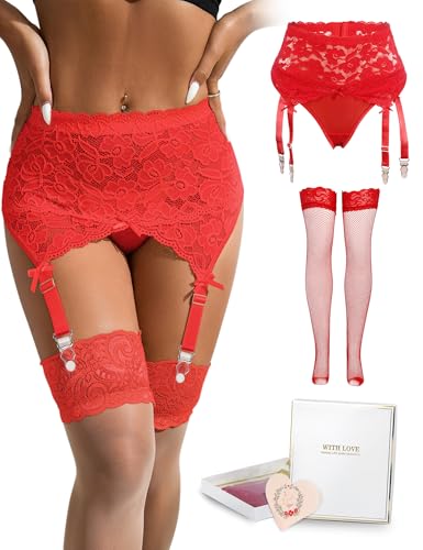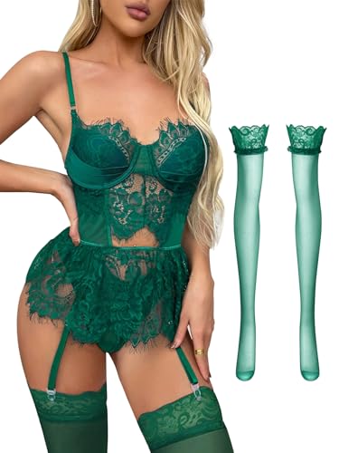 Lingerie Set for Women With Garter Floral Lace Sheer Lingerie Corset Underwired Babydoll