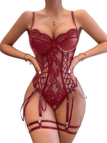 Lilosy Sexy Lace Up Floral Garter Underwire Teddy Bodysuit Lingerie Belt Women Top One Piece