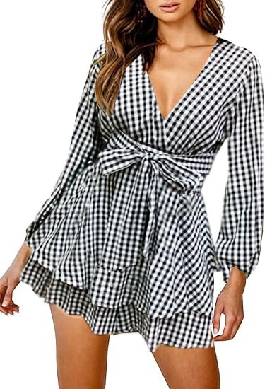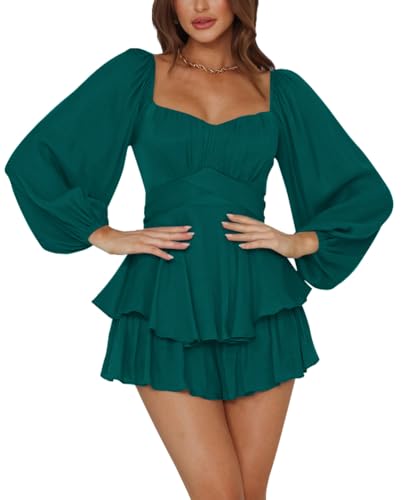 LYANER Women’s Jumpsuit Lantern Long Sleeve Ruffle Layer Tie Mini Short Romper