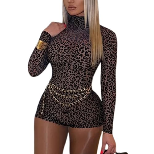 OYOANGLE Women’s Leopard Lingerie Romper Lace Trim Backless One Piece Teddy Babydoll