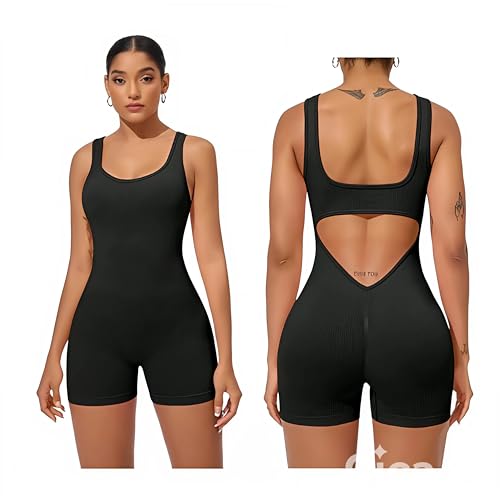 Milumia Women’s Boat Neck Sleeveless Jumpsuit Sexy Yoga Workout Backless Skinny Bermuda Rompers