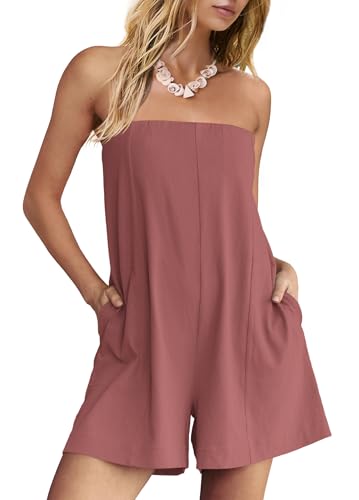 ODODOS Women’s Modal Soft Romper with Pockets Elastic Waist Sleeveless Outfit Summer Short Jumpsuits