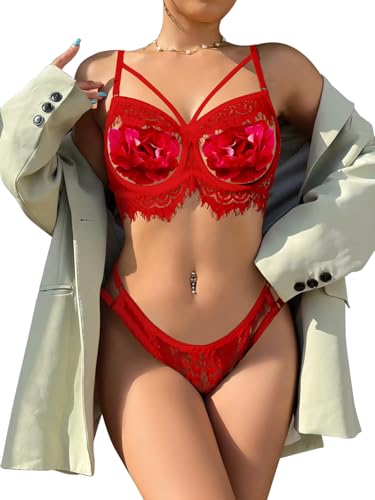 OYOANGLE Women’s 2 Piece Satin Lingerie Silk Bralette Triangle Bra and Panty Thong Set