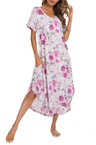 AVIIER Cotton Nightgowns for Women Sleeveless House Dress Ladies Long Nightdress with Pockets S-XXL