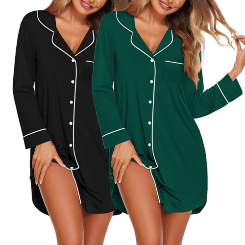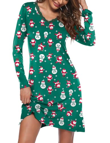 Ekouaer Long Sleeve Nightgowns for Women Sexy Lace Night Shirt V Neck Sleep Shirt Soft Sleepwear