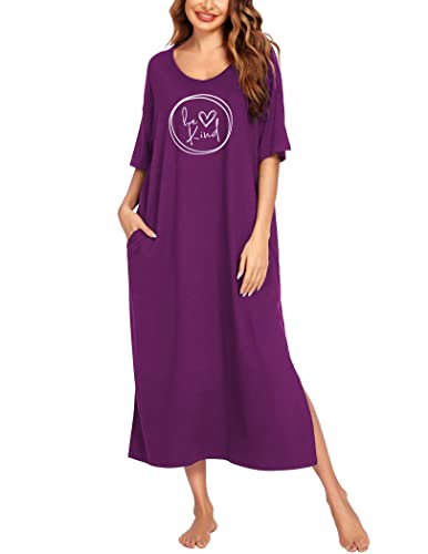 Ekouaer Long Nightgown for Women Short Sleeve Sleepwear Plus Size Loungewear with Pockets M-XXXL