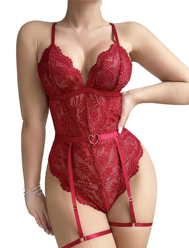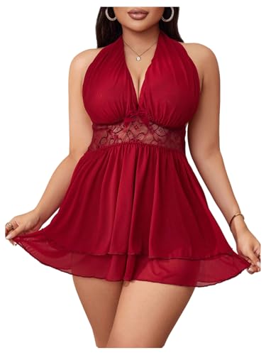 Women Sexy Lingerie V Neck Babydoll Dress Lace Chemise Sleepwear Mesh Nightgown with Thong S-XXL