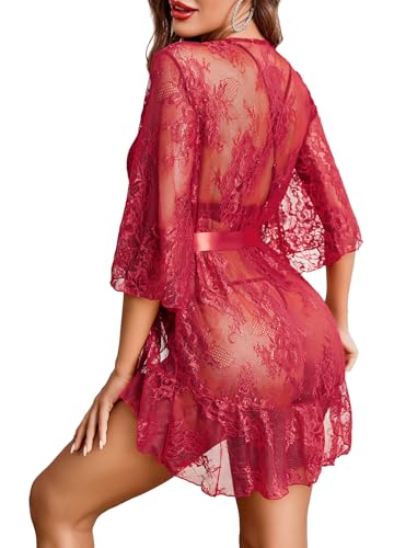 Avidlove Sexy Lace Robe for Women Lingerie Bridal Lace Babydoll Robe Lingerie Sheer Wedding Gown