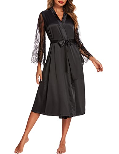 Avidlove Women’s Floral Lace Kimono Robe Long Sleeves Dressing Gown Bathrobe Bride Robe Nightwear