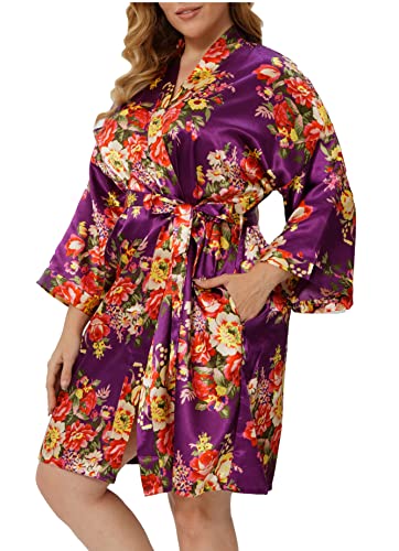 Giova Plus Size Floral Robe Blossom Printed Bride Bridesmaid Bathrobe Pattern Wedding Dressing Gown