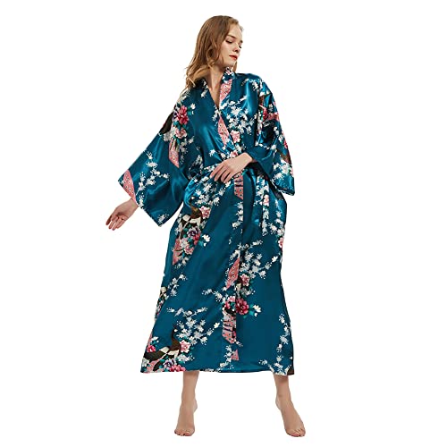 Women Kimono Long Robe Lightweight Bathrobe Soft Nightwear Comfy Nightgown