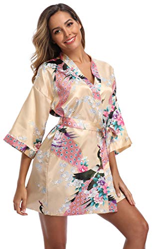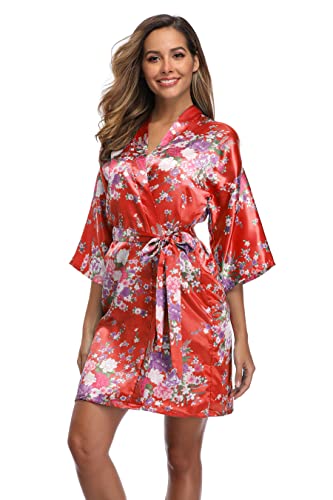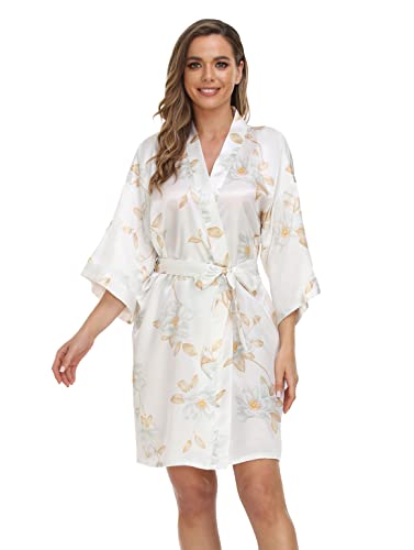 Women’s Floral Satin Robe Bridal Party Bride Bridesmaid Robes for Women Short Kimono Robe Dressing Gown Loungewear
