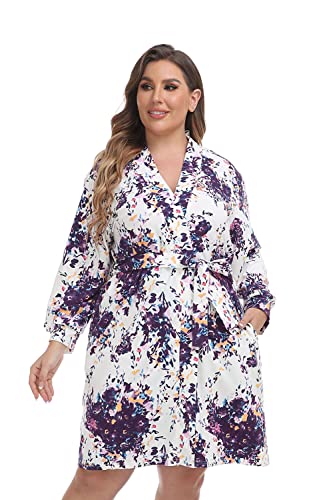 Women Kimono Robes Long Bathrobe Lightweight Soft Sleepwear V Neck Casual Ladies Loungewear with Belt Plus Size