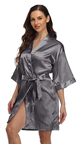 Women Satin Robe Wedding Shower Party Bathrobe Silky Kimono for Bride and Bridesmaids