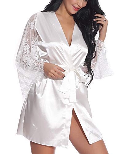 Women Sexy Lace Robe Kimono Lingerie Babydoll Bathrobes Chemise Sheer Nightgowns Bridal Sleepwear for Wedding Party Covers up