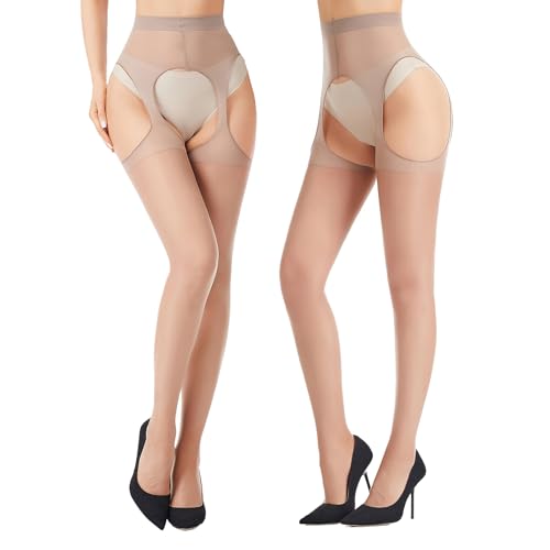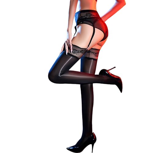 Shiny Suspender Tights for Women Oily Gloss Open Crotch Pantyhose Sexy Suspenders Pantyhose 1 Pairs