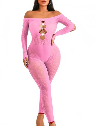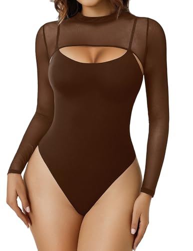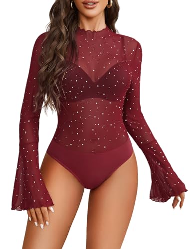 Avidlove Women Long Sleeve Bodysuit Rhinestone Bodysuit Mesh Bodysuit Tops Sexy Party Outfits