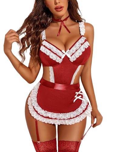 Avidlove Women Lingerie Set Lace Teddy Strap Babydoll Bodysuit with Garter Belts