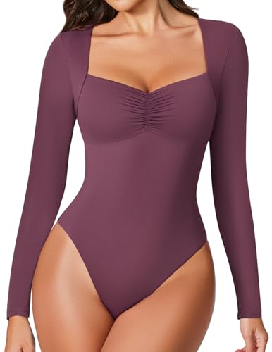Avidlove Women’s Long Sleeve Bodysuit Double Lined Square Neck Body Suit Tops Snap Closure Soft