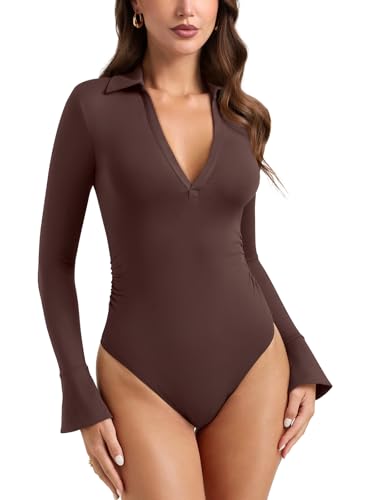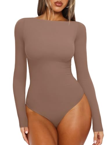 REORIA Women’s Boat Neck Long Sleeve Bodysuit Basic Going Out Body Suits Tops 2025