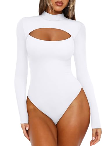REORIA Women’s Basic Lightweight Layering Sexy Slim Square Neck Long Sleeve Bodysuit Tops