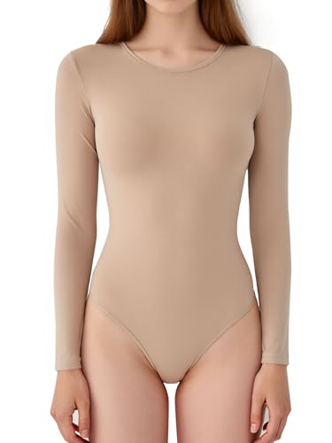 SIS QUEEN Women’s Long Sleeve Bodysuit Crew Neck Double Lined Sexy Thong Basic Body Suits for Women