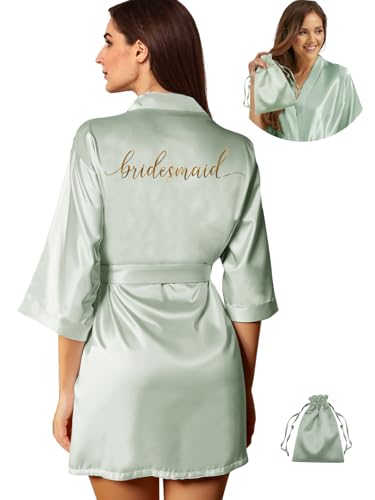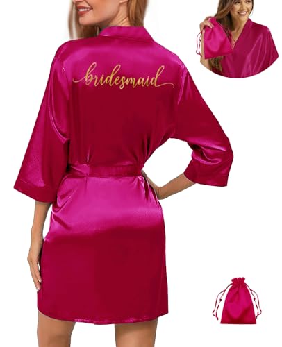2Pcs Womens Satin Bridesmaid Robes Silky Wedding Bridal Bride Robe Gown Kimono