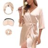 Ekouaer Women’s Silk Robe Set V-neck 2 Piece Bridal Party Robes and Satin Bathrobe Set with Pockets