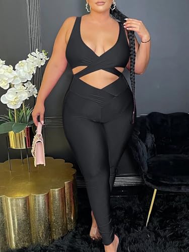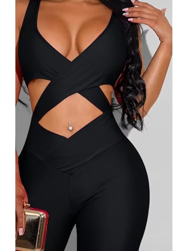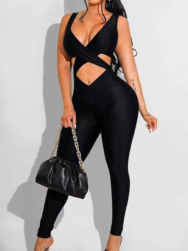 acelyn Women’s Sexy Sleeveless One Piece Jumpsuit-Summer Cut Out Bodycon Rompers Clubwear Y2k Streetwear