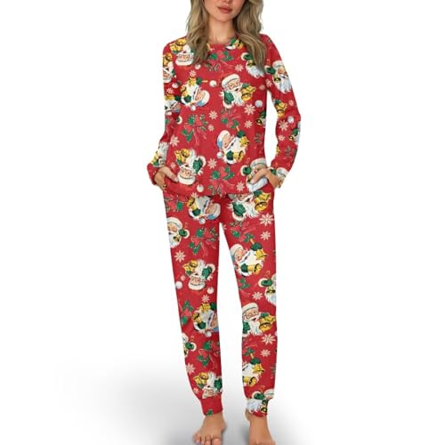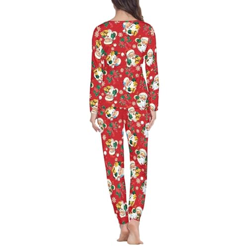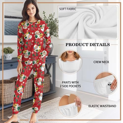 Animal Pajamas Cozy Lounge Set for Women 2 Piece Pjs Long Sleeve Sleepwear Top Soft Nightwear