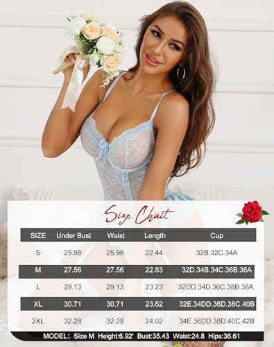 Aranmei Sexy Lace V Neck Teddy Bodysuit Lingerie for Women with Garter One Piece (No Stockings)