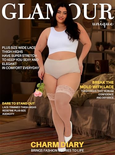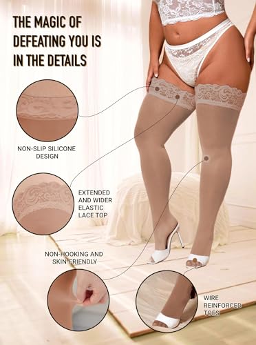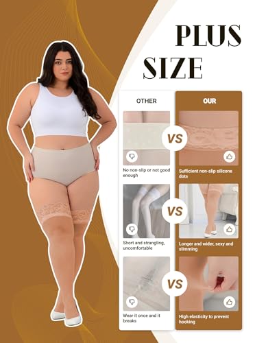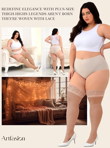 Artfasion Womens Plus Size Stockings: Lace Stay Up Sheer Pantyhose Anti-Slip Lingerie Stockings for Curvy Female Gifts
