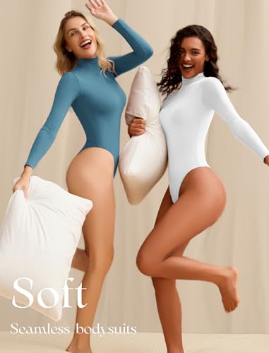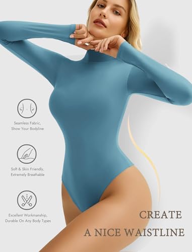 Avidlove Bodysuits for Women High Neck Long Sleeve Body Suits Snap Closure Double Lined Mock Neck Bodysuit Soft