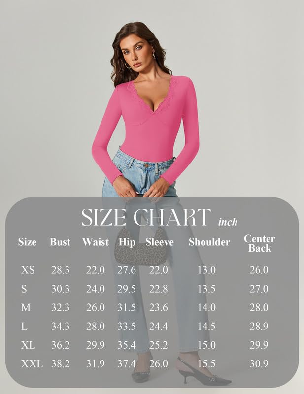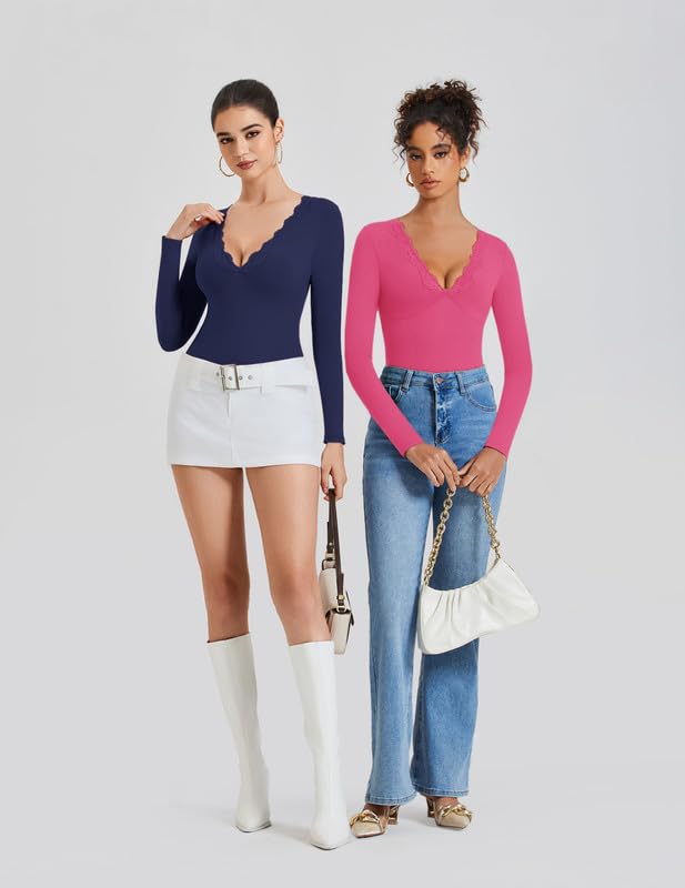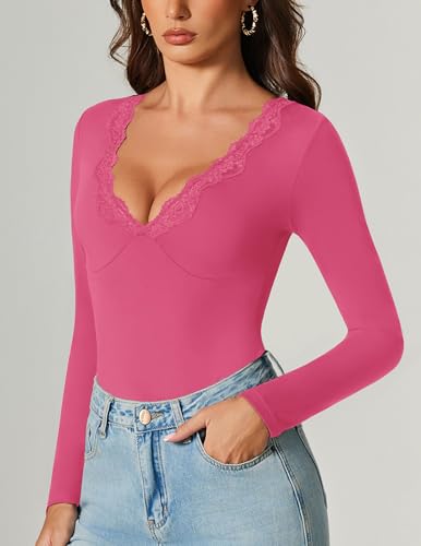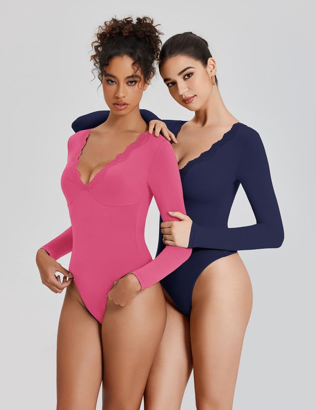 Avidlove Bodysuits for Women Long Sleeve Lace V Neck Body Suits Double Lined One Piece Leotard Shirt Going Out Tops