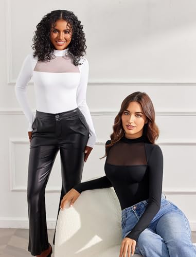 Avidlove Bodysuits for Women Mock Neck Shapewear Body Suit Long Sleeve Leotard Mesh Going Out Tops Concert Outfits