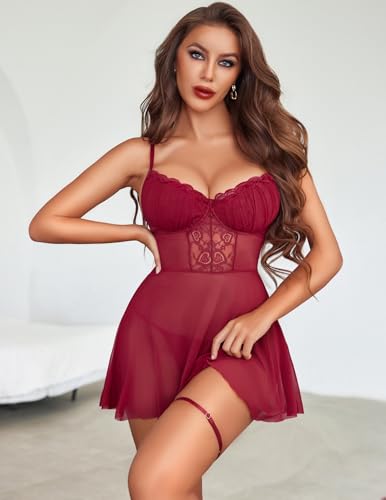 Avidlove Lingerie for Women Lace Babydoll V Neck Teddy Lingerie Sexy Sleepwear Nightdress Strap Mesh Chemise