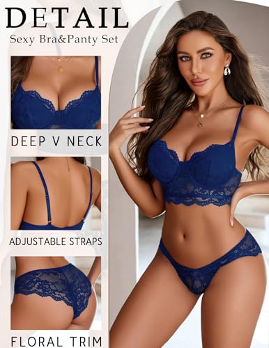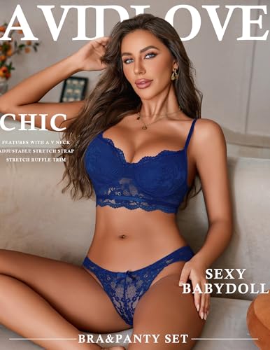 Avidlove Lingerie for Women Lace Strappy Underwear V Neck Bra and Panty Sets 2 Piece Bralette Outfits